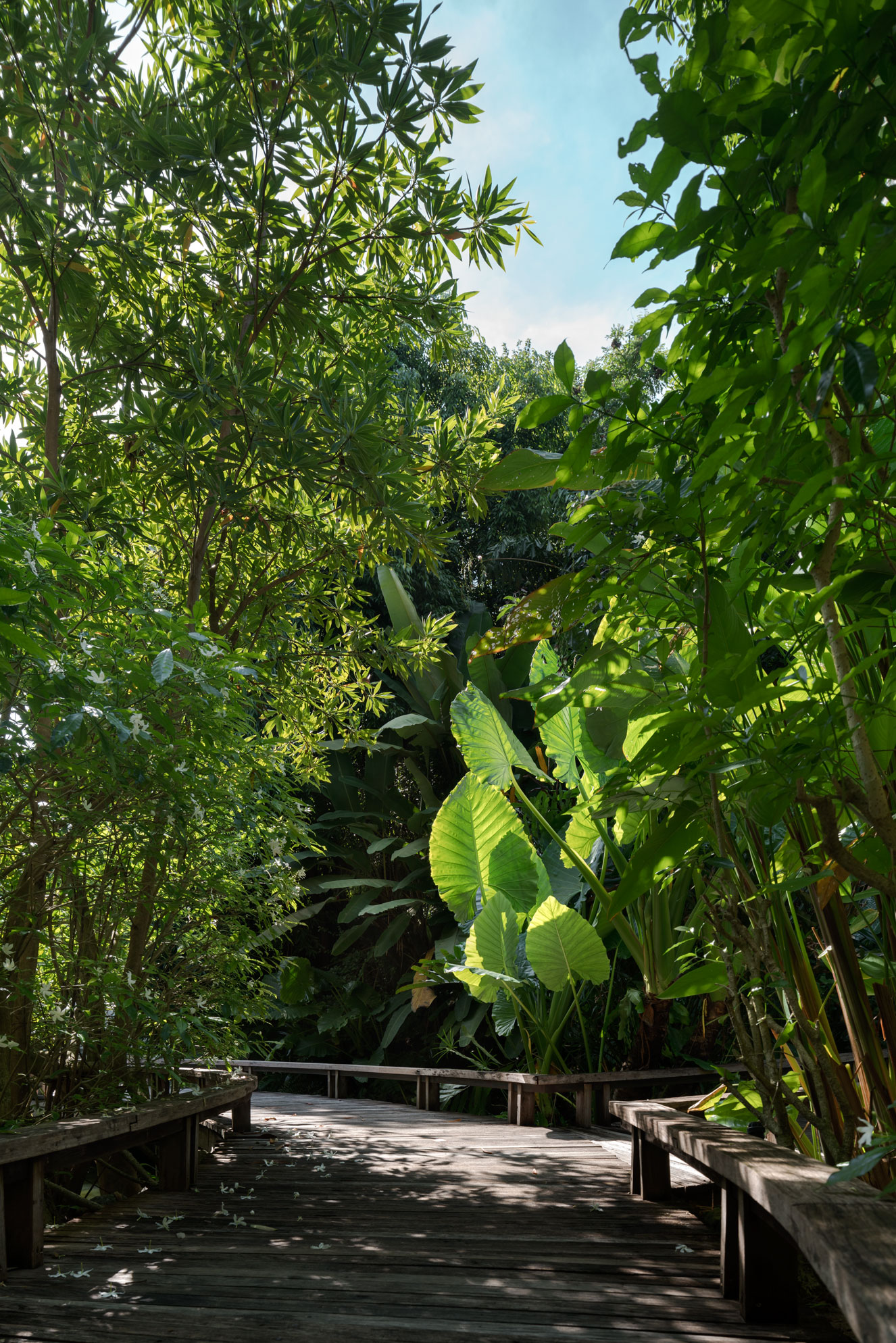 A white sand corridor was created to bring in the atmosphere of beach into the property and use as main visual corridor as an axis from the lobby that link to the sea as well as view corridor for the typical rooms. At the low area of the site, a natural pond was created to serve both aesthetic and function as drainage retention. This natural pond formed as view for lobby area, main dinning area as well as for typical room on the other wing. Underwater plants were introduced along the shallow area of the pond adjacent to rooms balcony or dinning terrace for guest to look down and perceive different viewing experience.