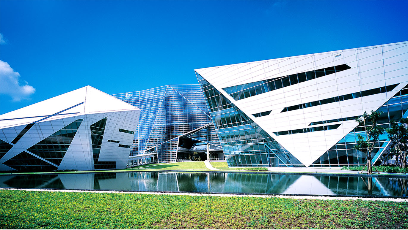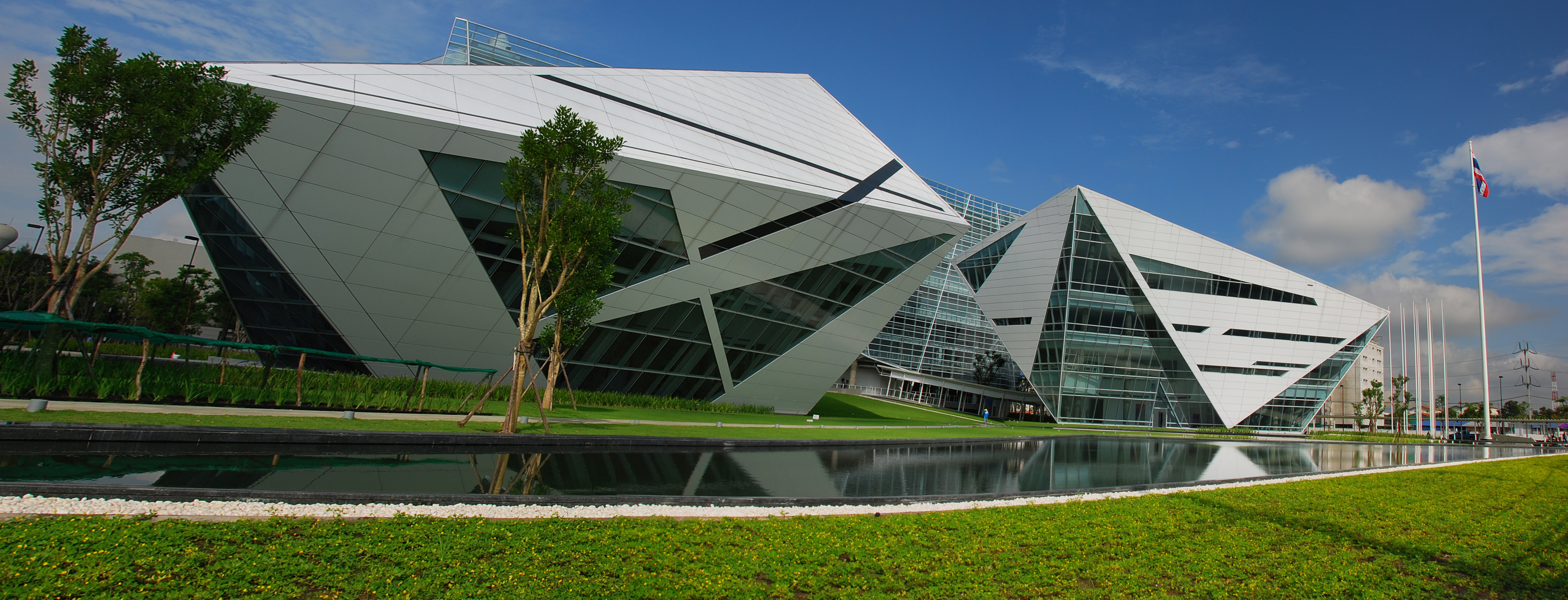 In collaboration between project architect and landscape architect, the concept of open frontage has been raised up to make the university clearly visible. The Architectural design will also represent the university identity. Reflection According to the architectural character that symbolized diamond, became the concept of reflecting effect that transformed into sparkling crisscross lines. In addition, the reflecting pond and ascended lawn allowed the architecture to be clearly visible and reflect the idea of reflection as well.